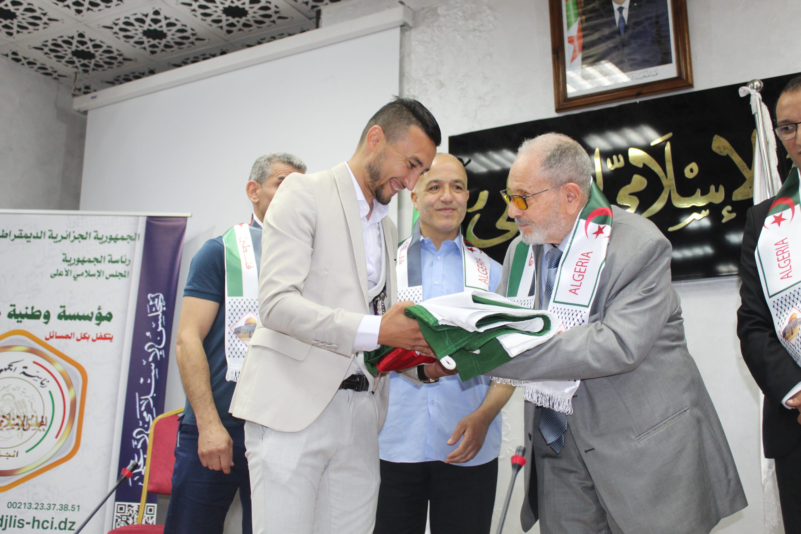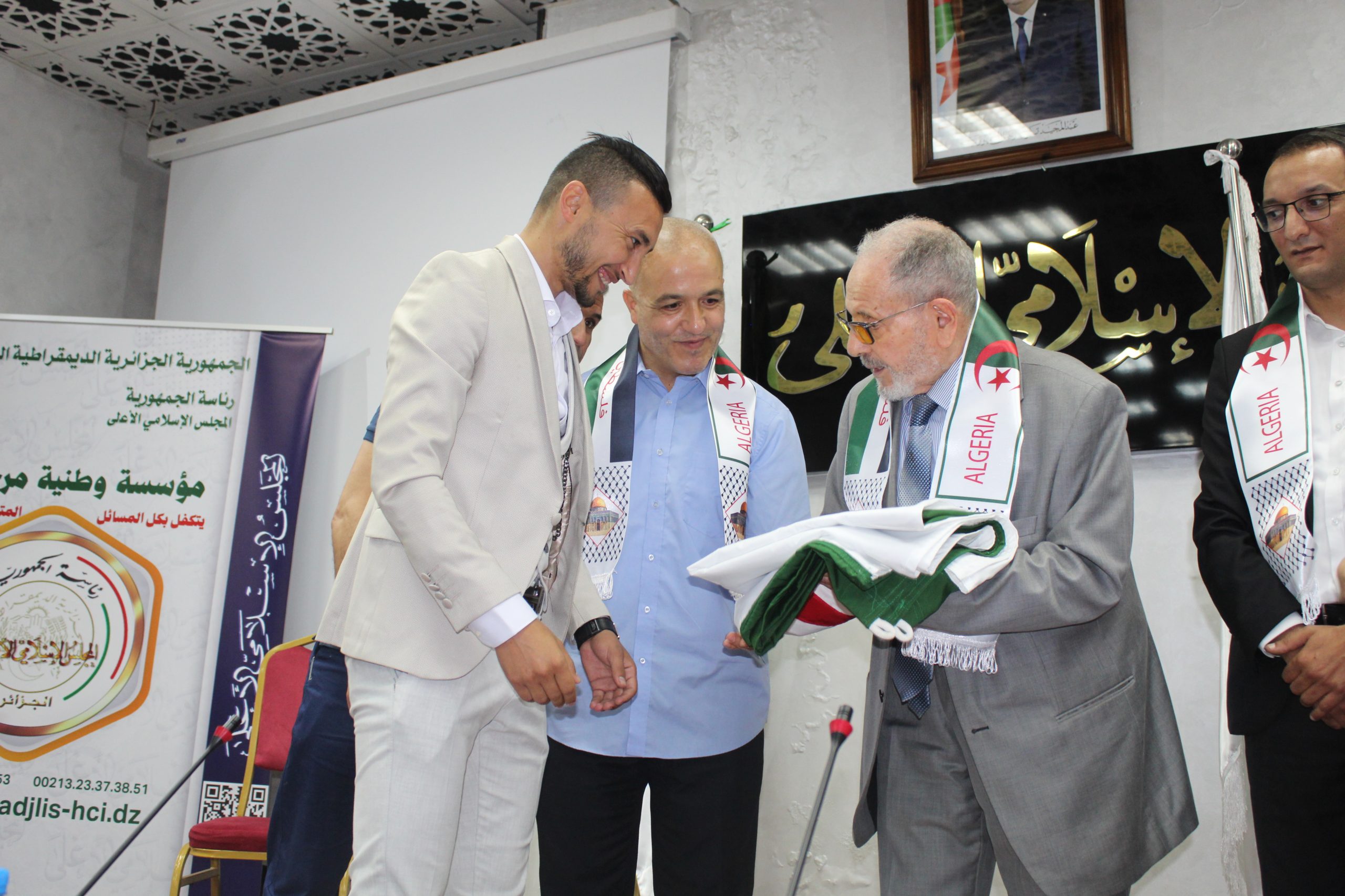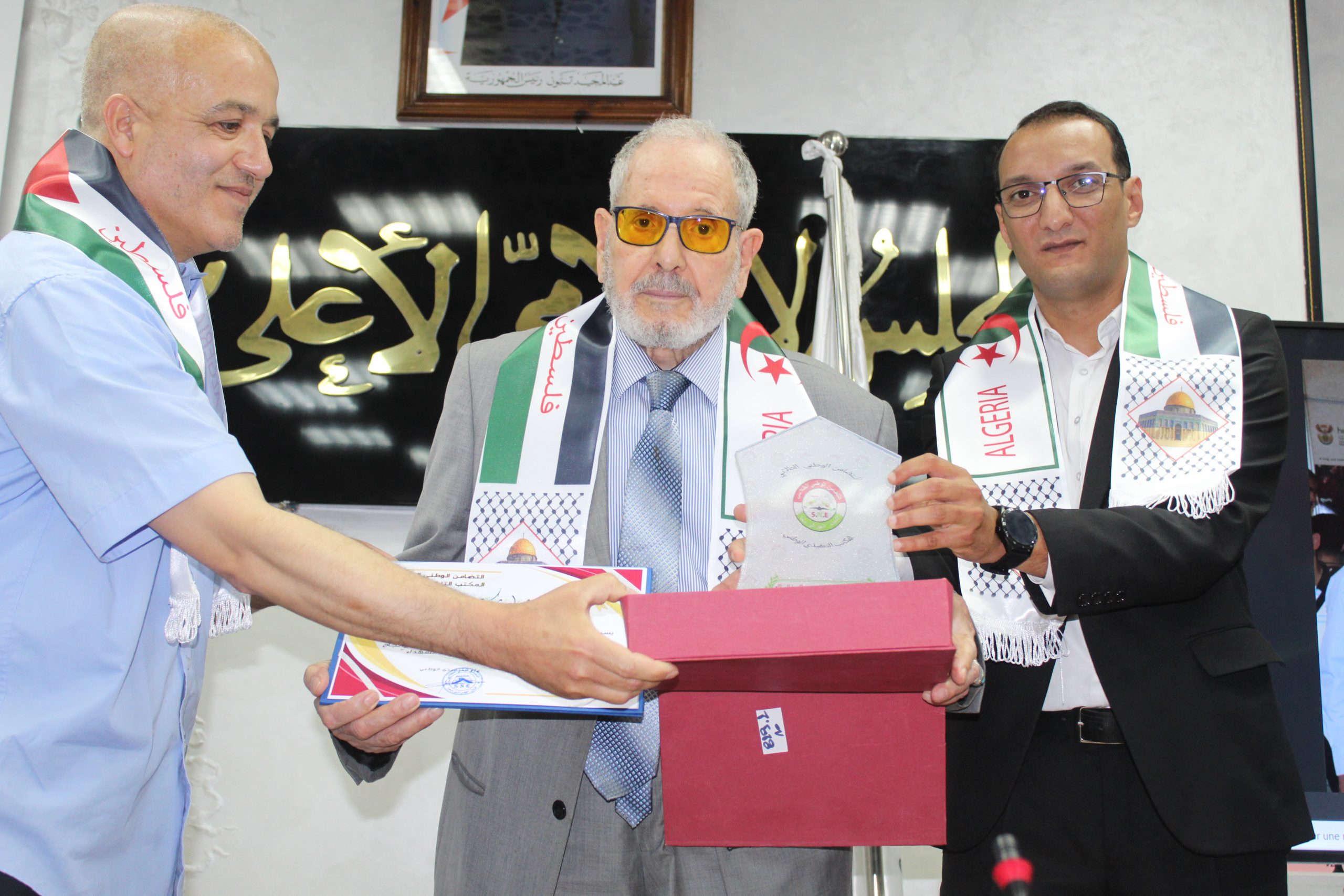توشيح رئيس المجلس فضيلة الشيخ الدكتور بوعبد الله غلام الله بوسام الاستحقاق الطلابي من طرف التضامن الوطني الطلابي تكريما له لمشاركته في إضراب الطلبة سنة (1956) باعتباره عضو الاتحاد العام للطلبة المسلمين الجزائريين. خلال فعاليات الندوة الطلابية الوطنية الموسومة بــ (الطلبة الشهداء) المنظمة بالتعاون مع التضامن الوطني الطلابي المنعقدة بمقر المجلس يوم 2024/05/25 احتفاءا باليوم الوطني للطالب.