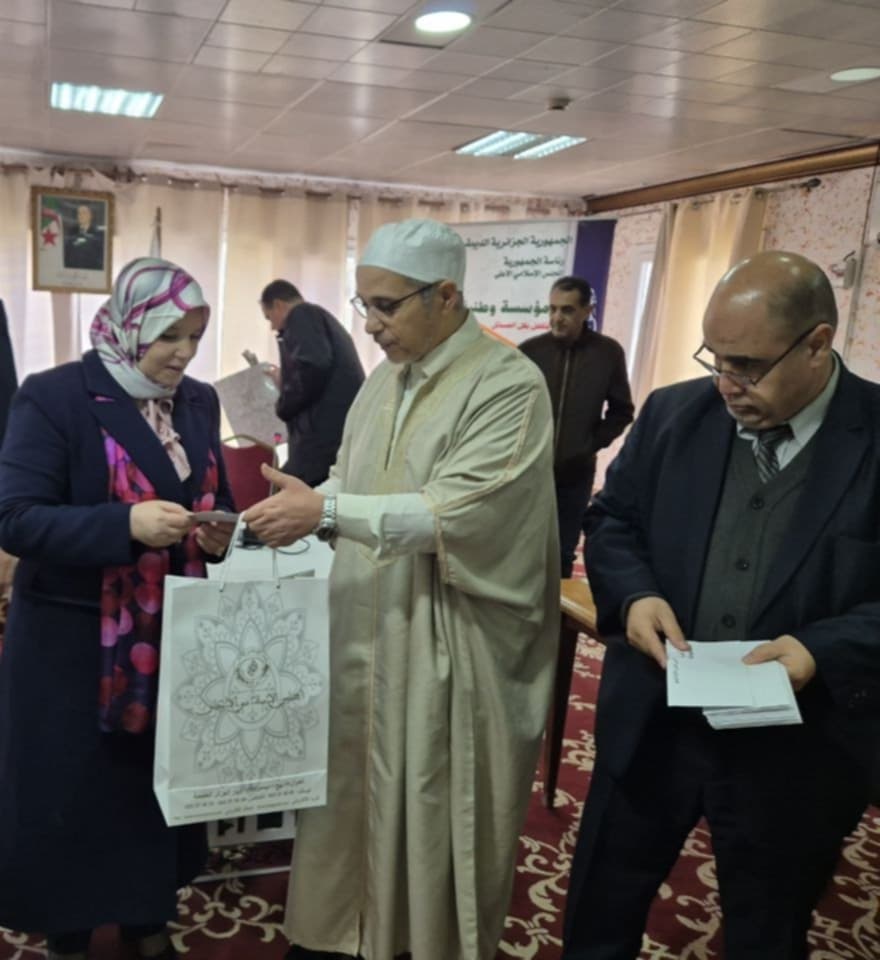 بمناسبة عيد الفطر المبارك، أشرف فضيلة الشيخ الدكتور مبروك زيد الخير، رئيس المجلس الإسلامي الأعلى، صبيحة اليوم، على مراسيم لقاء تقديم التهاني، جمع بين السيدات و السادة إطارات، وموظفي المجلس، حيث توجه إلى كافة الحضور ومن خلالهم إلى عائلاتهم وذويهم، بأحر التهاني والتبريكات، راجيا من المولى عزوجل أن يعيد هذا العيد على الشعب الجزائري و الأمة الإسلامية كافة بالصحة والعافية، وعلى بلدنا الحبيب بالأمن والإستقرار والرخاء والإزدهار.