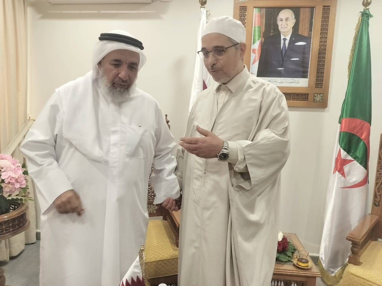 بمقر المجلس الإسلامي الأعلى، معالي السيّد غانم بن شاهين الغانم، وزير الأوقاف والشّؤون الإسلامية بدولة قطر، والوّفد المُّرافق له، وذلك في إطار تعزيز أواصر التّعاون الدّيني، وتوثيق الرّوابط الأخوية بين المؤسّسات الدّينية.