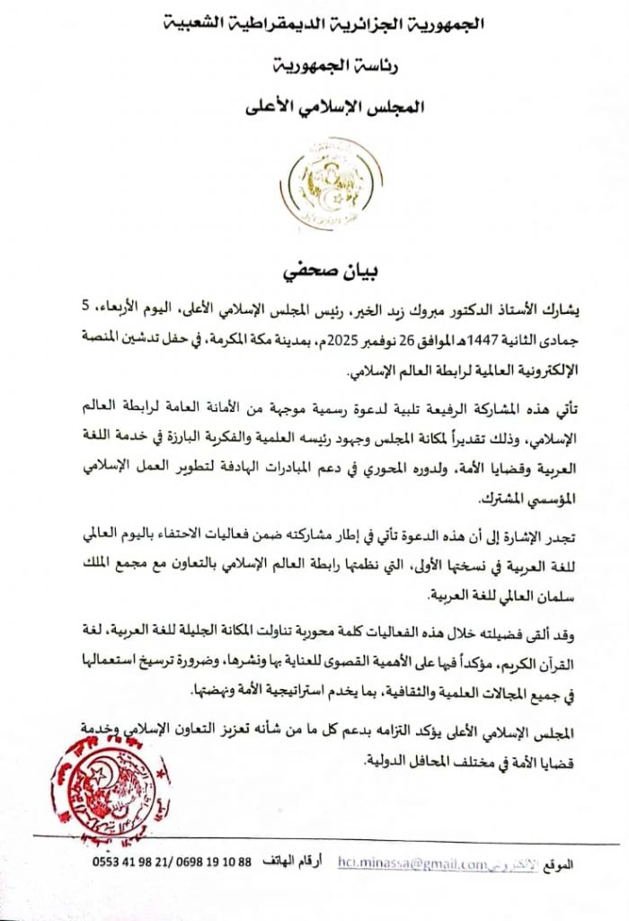 انعقاد الدورة الـ 85 للمجلس الإسلامي الأعلى بمدينة وهران: تأكيد على المرجعية الفكرية ودعم مسار التنمية الوطنية